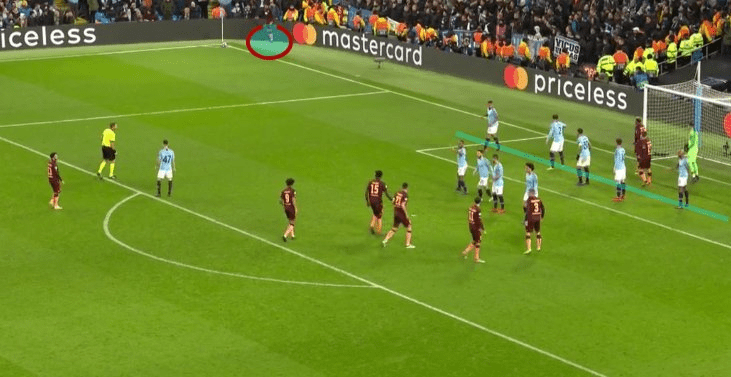 Positionsförsvar med två tydliga linjer mot inåtskruvad hörna, hämtat från @futbolxvenas twitter